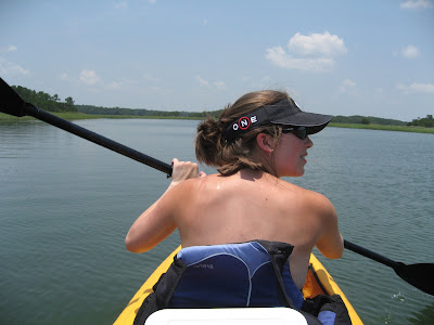 We ended up not heading out any farther (which meant no ocean) but instead rowed straight across the river to a very small island that was almost completely under the water (because of high tide) since there was no sand left we just plopped down in the shallow water to eat our picnic... which is usually what we do at the beach anyway so it wasn't a big deal!